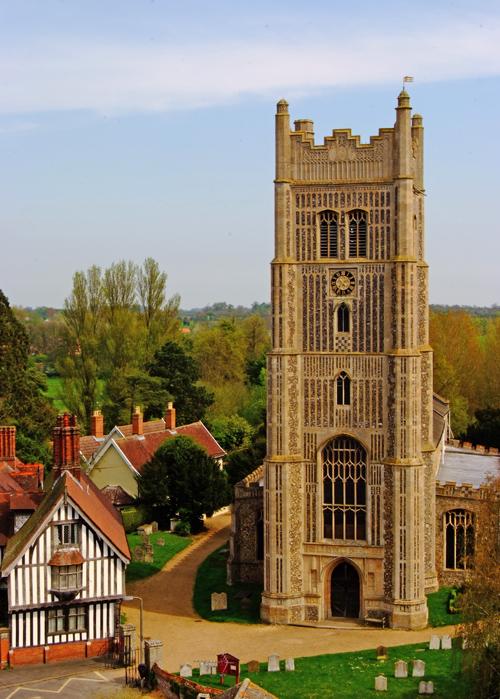This is a premier church in a county of fine churches. The 101ft tower, with its array of elaborate flushwork, grand stone parapet, noble polygonal buttresses, etc., is a masterpiece of c.1450-88, displaying John De La Pole’s arms, as does the two-storeyed south porch, which has superb 15th century stonecarving. The south doorway has Early English dog-tooth and stiff-leaf carving which is 200 years older. The fan-vaulting beneath the tower, the pinnacled, cusped and crocketed tomb recess of the 1300s, the south chapel parapet of Tudor brick and terra-cotta are just some of the architectural details to be savoured here.